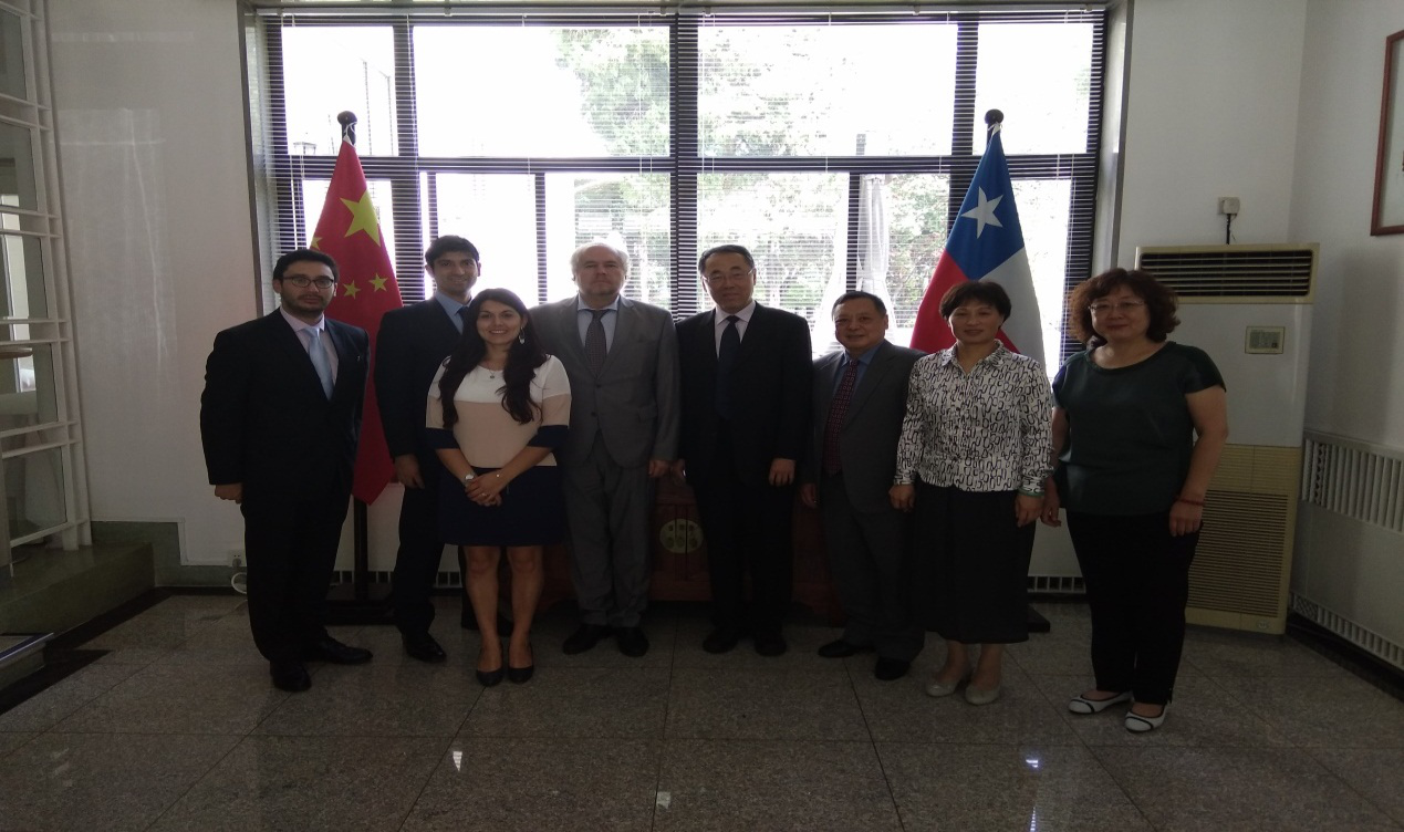 8月14日,中国国际科技合作协会冯瑄副会长、科技外交官志愿服务平台刘远文参赞及协会会员—长春希达电子集团的企业家一行拜访智利驻华使馆。使馆副馆长龚谷泰参赞(Gustavo Gonxalex)、科技三等秘书克鲁兹(Paulina Cruz)、商务三等秘书甘博亚(Cesar Gamboa)等会见了我方人员。